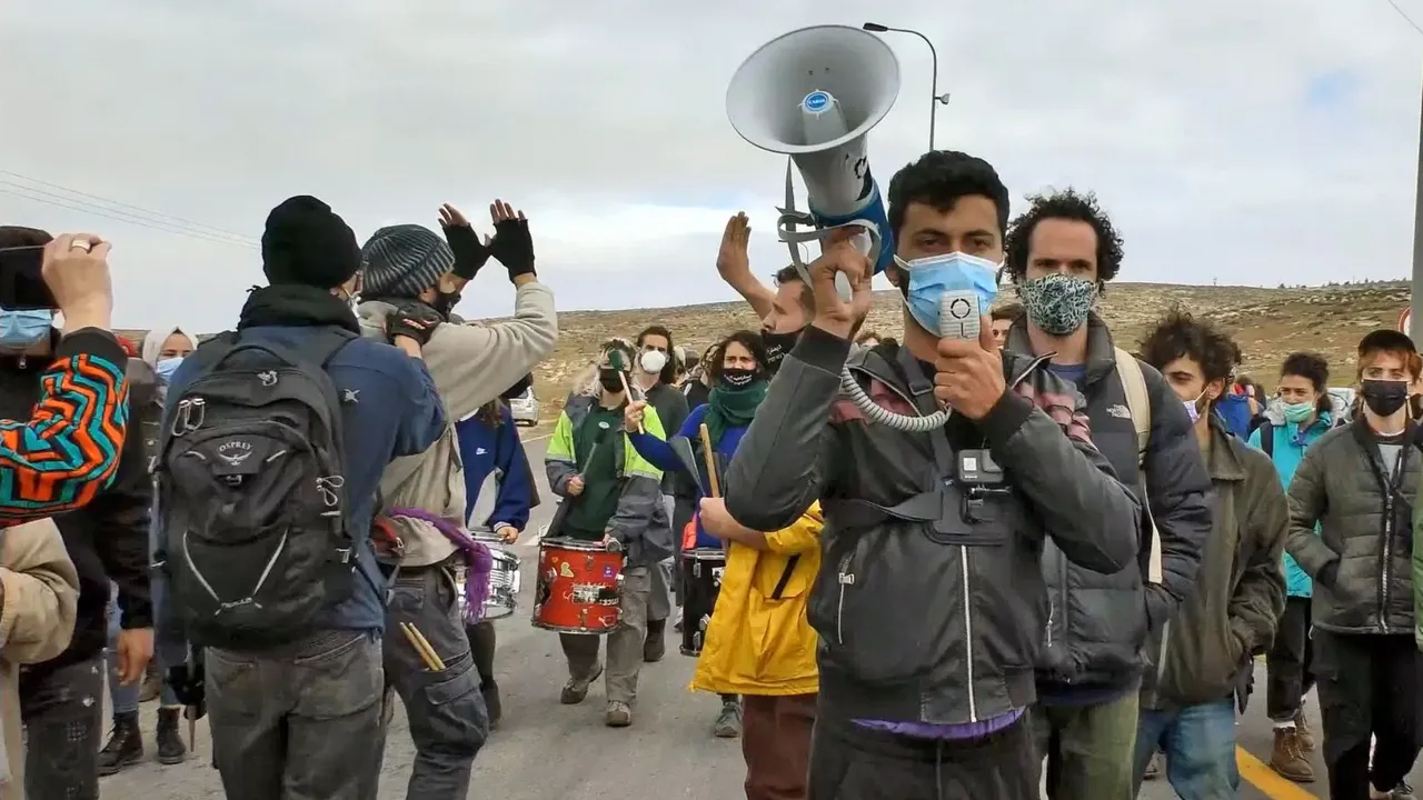 Een Palestijns-Israëlisch collectief, toont de verwoesting van Masafer Yatta op de bezette Westelijke Jordaanoever door Israëlische soldaten.